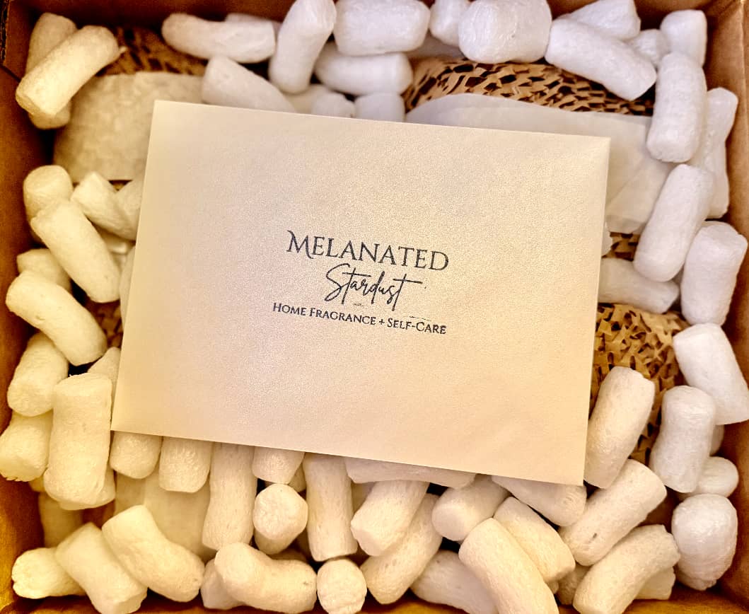 At Melanated Stardust Home Fragrance + Self-Care, we believe caring for yourself and caring for the Earth should always go hand in hand. That’s why every product is crafted in small batches with clean, non-toxic ingredients and packaged with recyclable, eco-conscious materials. Our commitment is simple: create fragrances and self-care essentials that nurture your well-being, uplift your environment, and honor the planet we all share.
